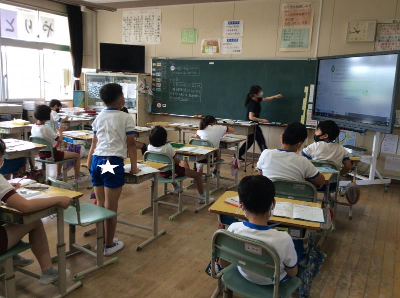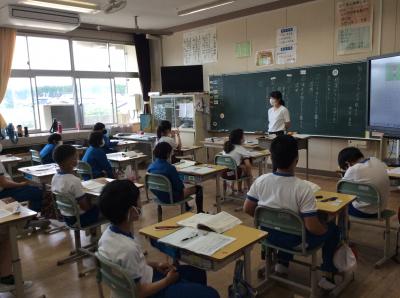 4年生は算数の授業で「何倍かをもとめるにはどうすればいいか」というめあてで学習に取り組みました。