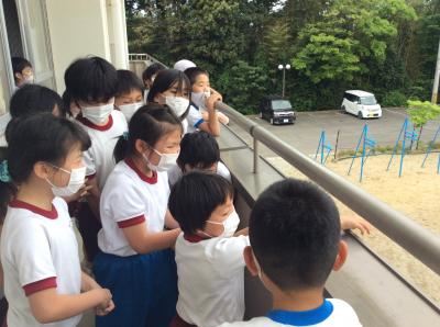 3年生の理科の様子です。元気に飛んでいくチョウの姿を見送りながら、みんなで手を振りました。別れは少し寂しいですが、元気に育って良かったですね。小さな命も大切に思うことができる気持ちをこれからも持ち続けてほしいと思います。