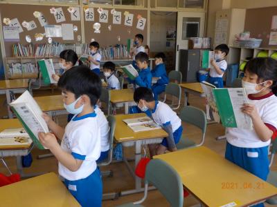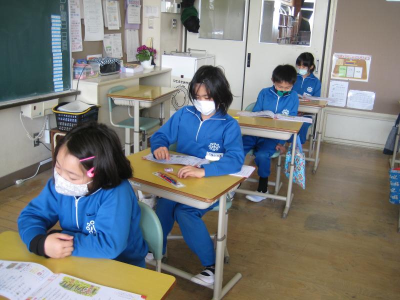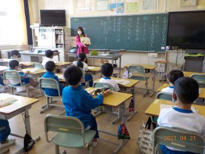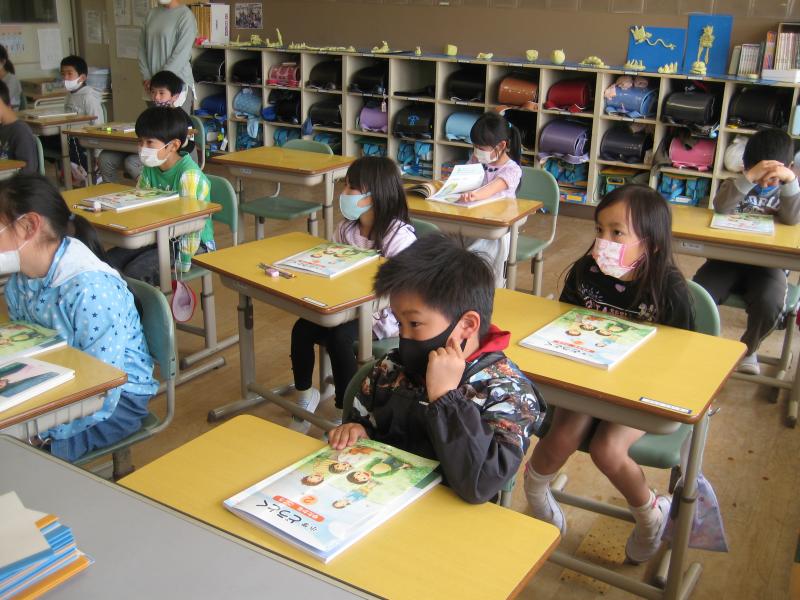 1校時目の1年生の様子です。先生の話や友達の発表をよく聞き、集中して学習に取り組んでいました。小学校の学習にも徐々に慣れてきたようです。