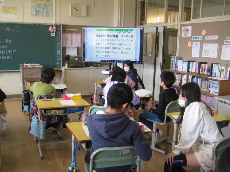 6年生の社会科の学習の様子です。国民の権利と義務について学習しました。教科書に書いてある言葉の意味をしっかり確認しながら学習を進めています。