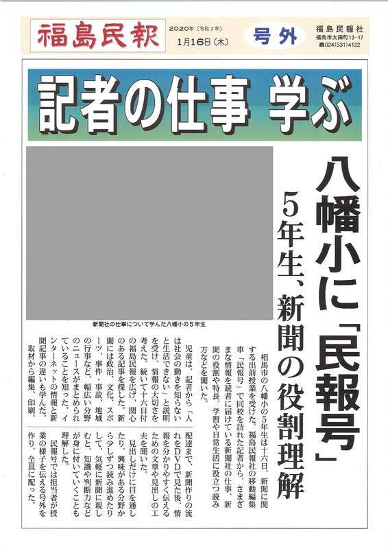 1月16日,5年生のみなさんが,福島民報社の出前授業を体験しました。