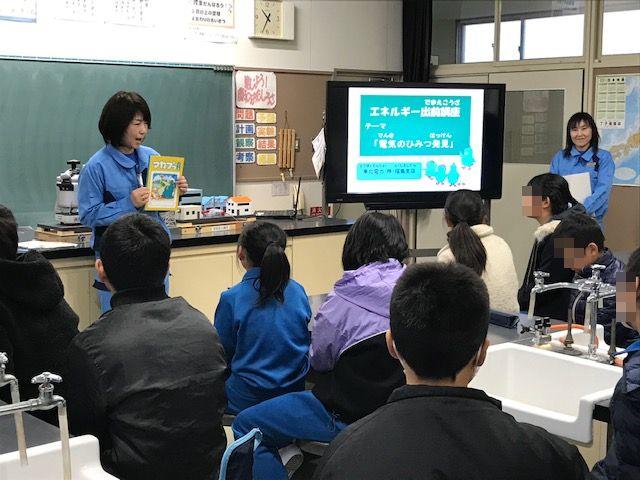 29日,さらに6年生は,東北電力の方々をお呼びして,電力発電の仕組みや電気の秘密について詳しく教えていただきました。