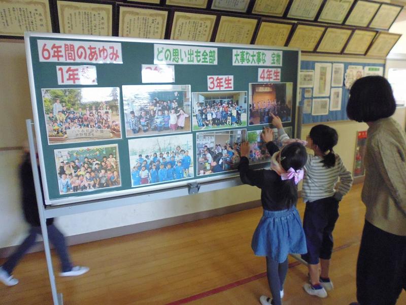 一歩一歩成長していったのがよくわかります。下級生たちは、写真の前に立ち止まって、ニコニコ笑顔で6年生の歩みを鑑賞しています。