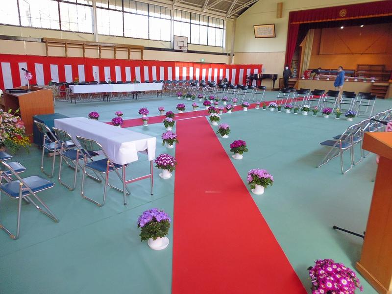 23日の卒業証書授与式に向けて、準備完了!!今年から対面式。来賓席や保護者席も本番さながらにセッティングして、会場を再現しています。当日はそこに来場するはずだった方々が座ってお祝いしていると想像しながら、卒業生を祝福したいと思います。