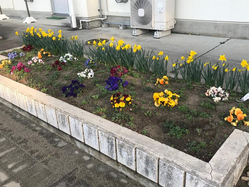 花壇の花も笑っております。今年は暖冬なので、もうこんなに咲いています。