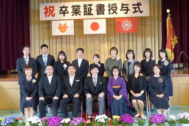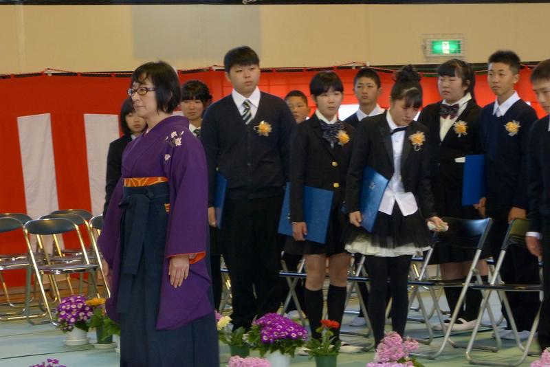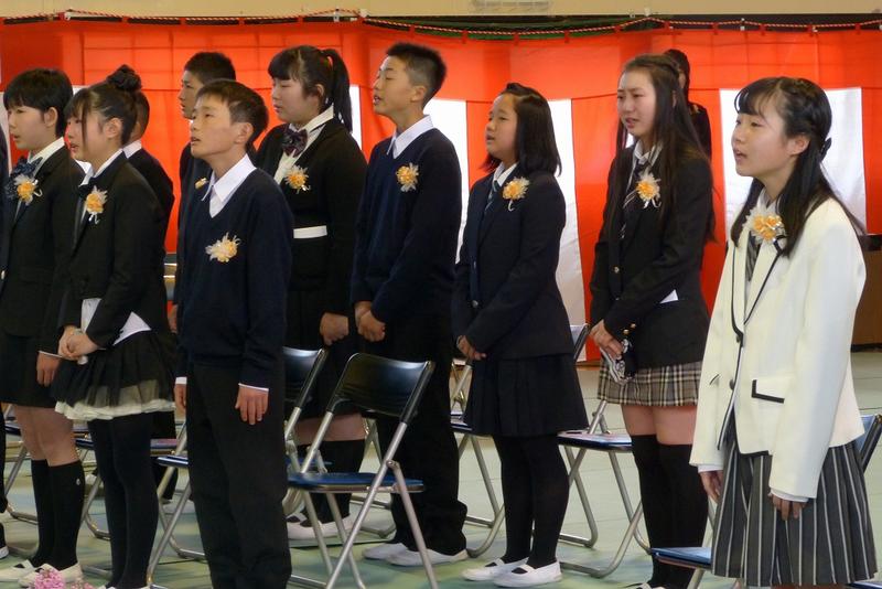 介添えは、1,2年生の時の担任の先生、寺島先生です。感動!!ほとんど練習していないのに、しっかりと卒業証書をもらうことができた6年生たち。すばらしい!!