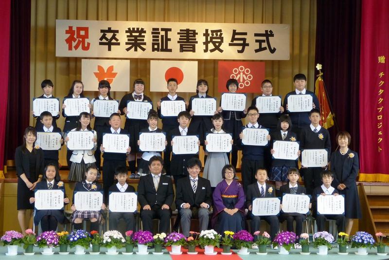 礼法や返事など、堂々と参加することができました。また、呼びかけも心を込めて上手に発表することもできました。大きな成長を心で感じる授与式でした。本当におめでとう!!
