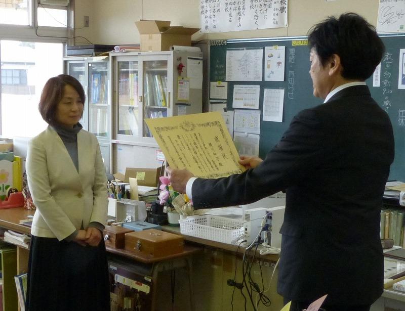 横川和子先生は定年退職になります。福島県より感謝状をいただきましたので、職員室みんなのまごころを持ち寄って贈呈式を行いました。さらに、相馬市からも感謝状をいただきました。40年間、子どもたちの命と健康のためにご尽力いただき、本当にありがとうございました。