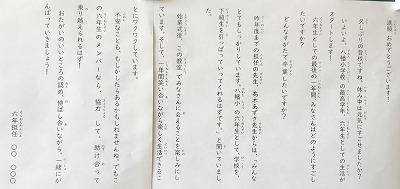 「全校生のみなさん。おはようございます。心のこもったあいさつをしてくれたみなさん,ありがとう。残念なのですが,これが最後のあいさつになりそうです。