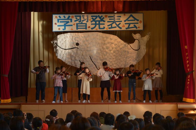特設バイオリンクラブのバイオリン演奏。どの曲も大変美しい音色でした。放課後に力を合わせて一生懸命練習した成果を発揮することができました。