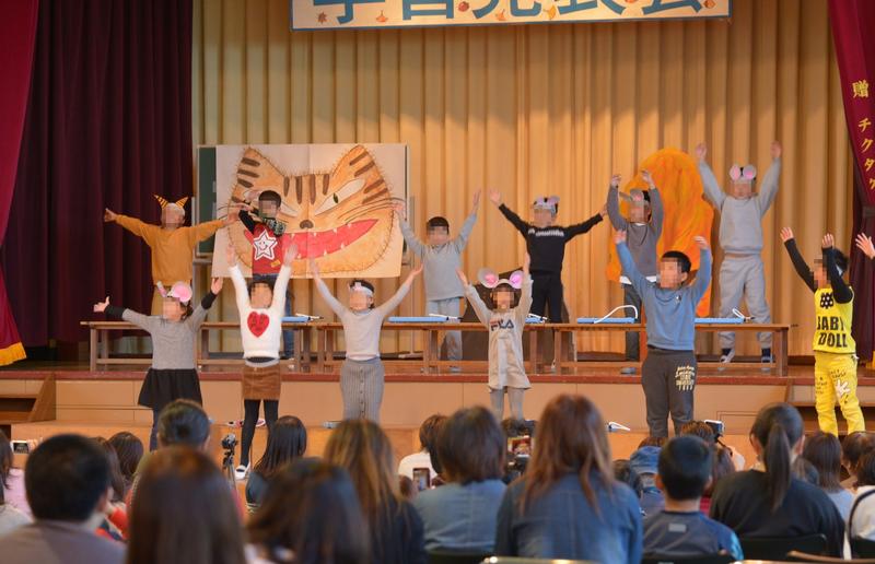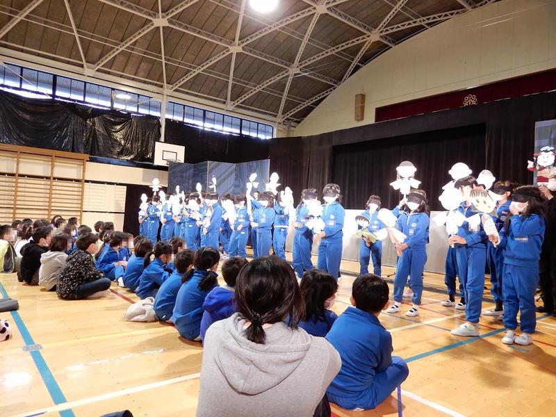 2年生の劇「ニャーゴ」では,八幡小バージョンとして面白さを取り入れて,大きな声で楽しく演技できました。最後の楽しい歌と踊りでは,友達の大切さを会場のみなさんに伝えていたのも印象に残りました。