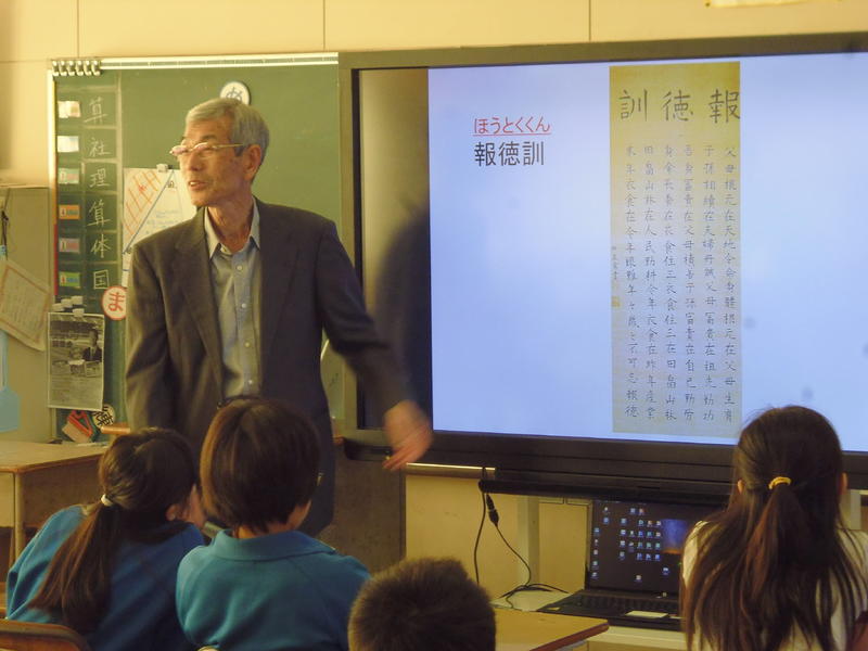 4年生の社会科の学習では,涼ヶ岡八幡神社の遠藤さんをお招きして,相馬の歴史やご仕法の精神などについて詳しく調べました。市内の二宮仕法にかかわる場所を見学しにも行きました。八幡地区発祥の二宮仕法ということもあり,興味津々!ふるさとのよさを体感できました。