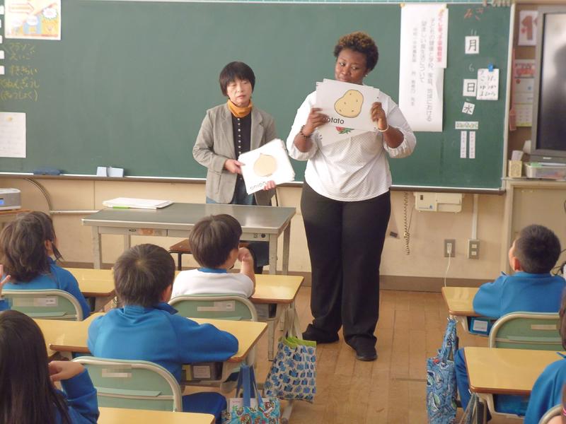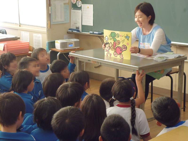 楽しい楽しい外国語,英語の活動。英語指導員の伹野先生と外国からいらっしゃっているALTの先生の英語を聴きながら,楽しくコミュニケーションタイム!!いつもドキドキワクワクの授業で,子どもたちも大変楽しみにしています。