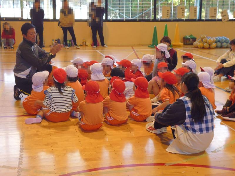 幼稚園では,2回目のサッカー教室が行われました。ユナイテッドFCのご協力により,楽しいボールゲームやチーム対抗戦を楽しむことができました。さすが,プロの選手の教え方はとっても上手で,子どもたちは汗いっぱい笑顔いっぱいになって楽しむことができました。