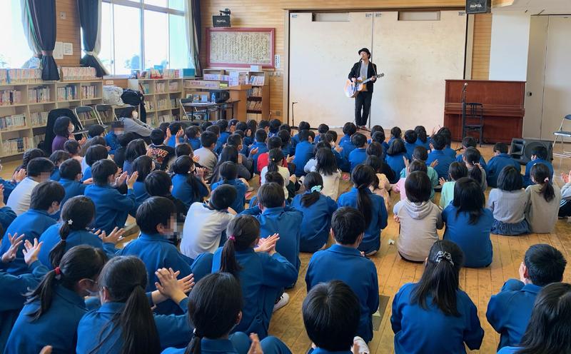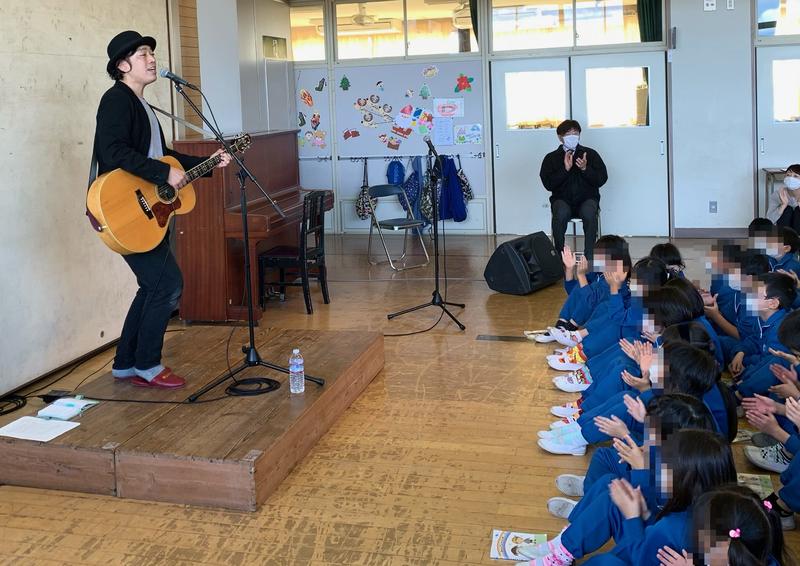 さすがプロのミュージシャンの方の演奏と歌声はすばらしかったです。子どもたちも心で鑑賞することができました。白兎さんは,震災からずっと,相馬市が元気になるようにと応援し続けてくださっている方で,花の種も毎年いただいております。
