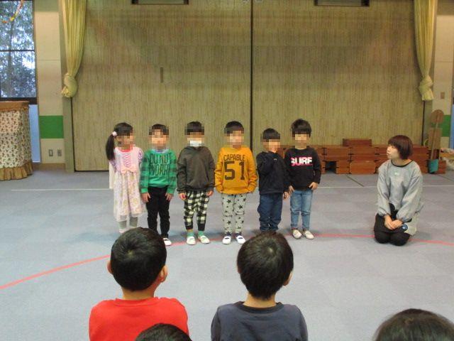 さくら組に新しいお友達一人増えての始業式。子どもたちの話を聞く態度は素晴らしい!!冬休みが終わって最初の日。久しぶりなのに,2学期に身につけたことがきちんとできていました。