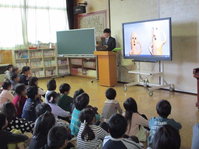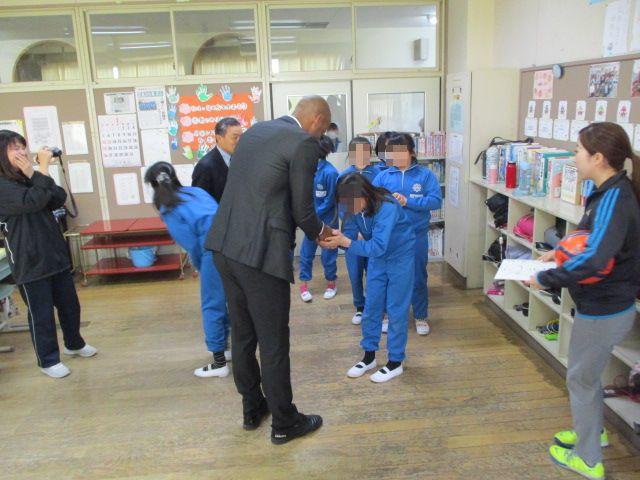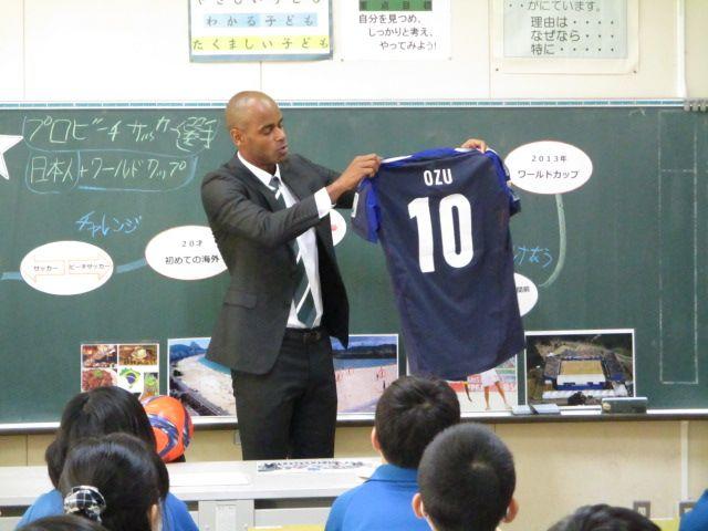 ゲームのあと,教室に戻ってオズ選手のお話を聞きました。オズ選手のワールドカップ出場までの「人生」を熱く語っていただきました。子どもたちの目は真剣そのもの!!何人もの5年生がうなずきながら聞く姿も印象的でした。