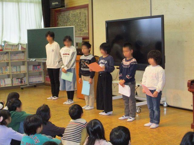 次に,各学年の代表のお友達が,冬休みの思い出と3学期の抱負を発表しました。みんな堂々と発表できた姿に,大きな成長を感じました。いよいよ学年のまとめの学期ですね。応援していますよ。