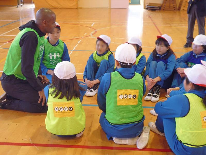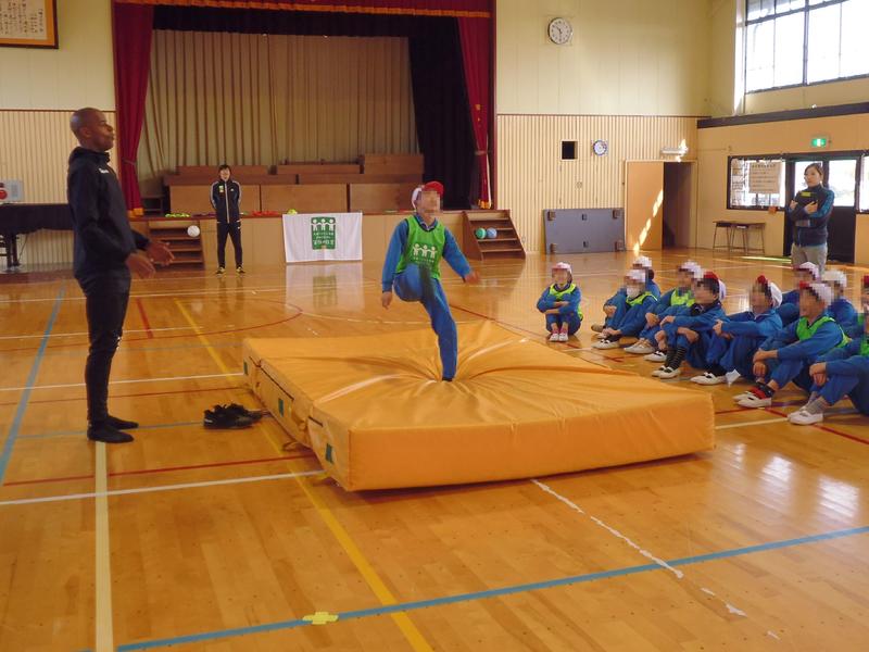 いくつかのゲームをみんなで楽しみましたが,みんなで知恵を出し合って協力することの大切さを教えていただきました。子どもたちの笑顔がとっても輝いていました。ありがとう!オズ選手。