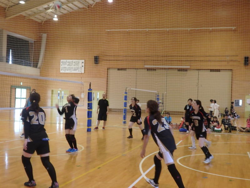 バレーボールの会場は向陽中学校体育館。八幡チームの気合は十分。声を出して,ボールをつないで,とっても白熱した試合になりました。