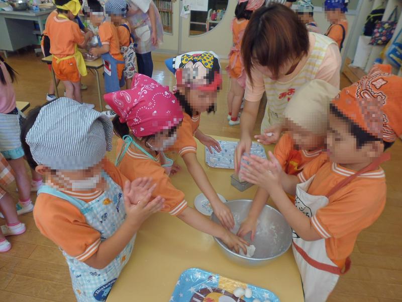 大きいのから,小さいのまで,いろいろな顔をもったおだんごが,次から次へと生まれていきます。調理は,あれこれと考えながら活動できるので,子どもたちの思考力を高めると言います。