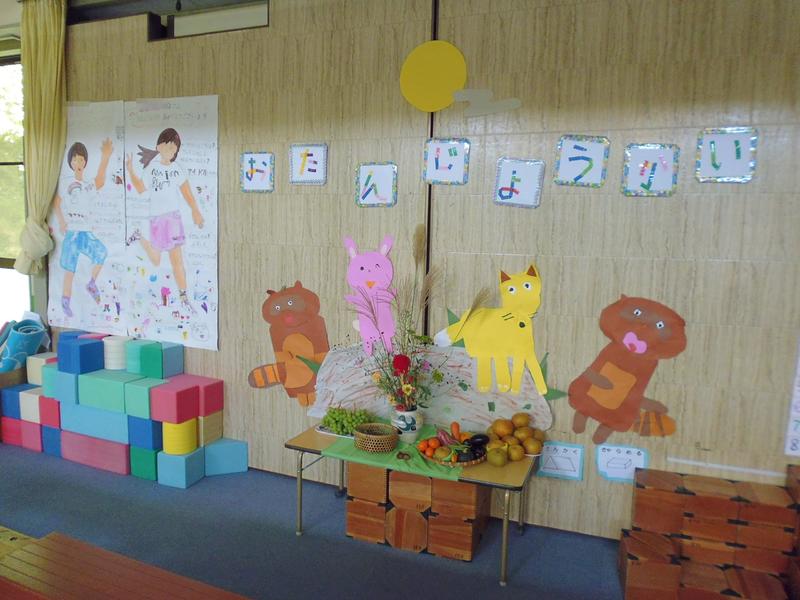 今日は3人のお友達のお誕生会も行いました。手作りの飾りがとっても素敵。ススキや秋の草花を飾って,季節を味わうこともできました。これからも自然とのかかわりを通して,その美しさや不思議さなどを心で感じることができる豊かな感性を育てていきたいと思っております。中秋の名月・・・親子でお月様を眺めて,その明るさや美しさを感じ取ってみてはいかがでしょうか。