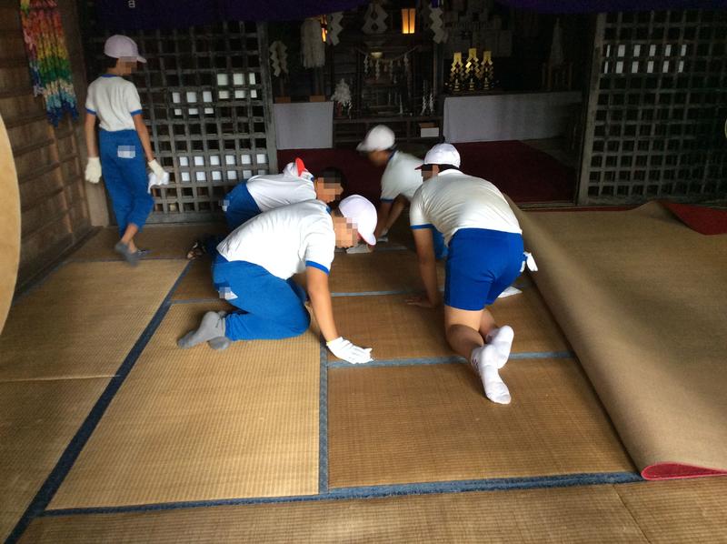 神社の中も,神社の外も,例大祭にいらっしゃる方々が気持ちよくおいでいただけるように,みんなで協力して,ごしごしごしごし・・・・・・・・・