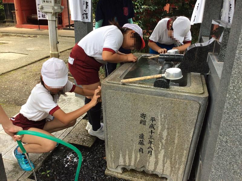 20日に八幡神社例大祭(いもずいも)が開かれます。そのため,1・2年生は学校周辺を,3・4年生は八幡神社の参道を,5・6年生は八幡神社の境内とその周辺を,心を込めてきれいにしました。