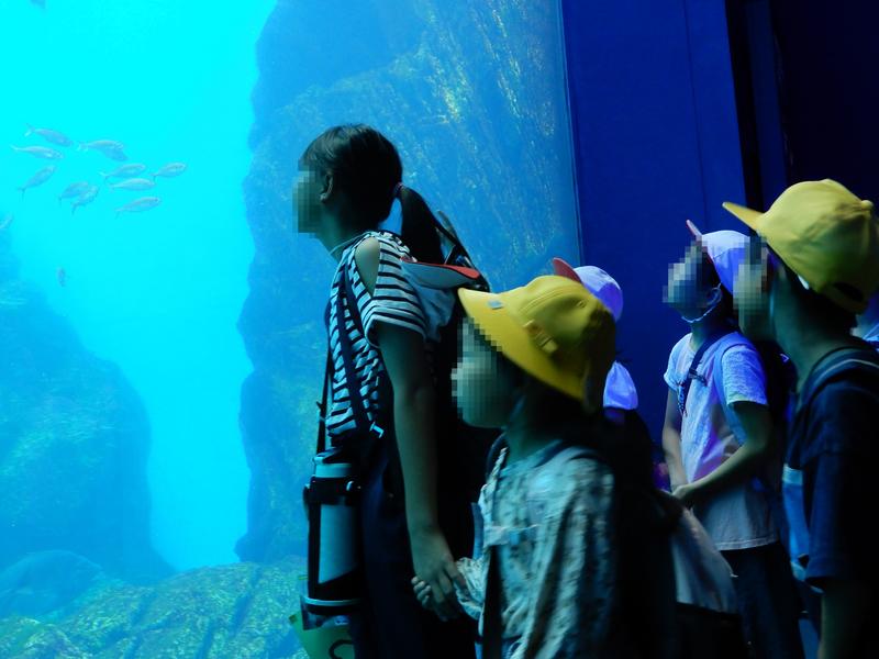 水族館内は,異学年集団による班活動。上級生は責任をもって下級生の面倒をみます。下級生は素直に上級生の言うことを聞きます。
