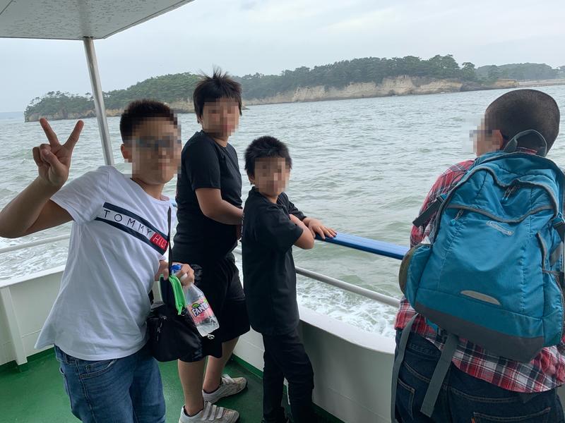 宿泊施設を後にし,一路松島海岸へバスで移動。台風の影響でストップ予定だった遊覧船も,6年生の行いが良かったため??予定どおり運航されました。ヤッター!!!