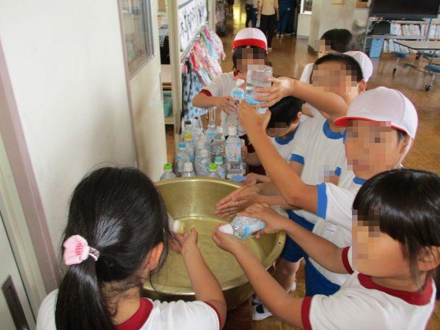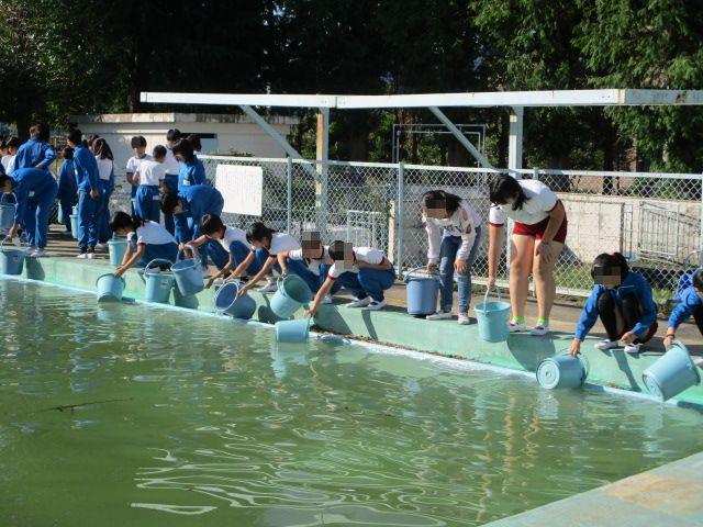 高学年の子どもたちは,トイレの水洗用の水として,プールの水を汲みました。子どもたちの力は絶大で,本当に助かりました。ありがとう!!