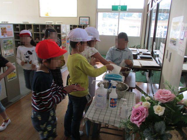 外遊びから帰ってきて,昇降口で消毒手洗い。万全です。子どもたちも先生方も,知恵を出し合いながら,生きる力を発揮して生活することができています。
