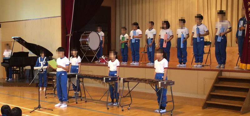演奏後に,5年生からお礼の言葉。八幡っ子の代表として,堂々と,そして楽しく演奏してきてください。みんなで応援していますからね。
