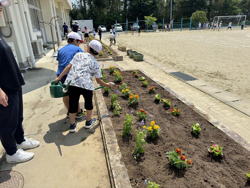 色とりどりの苗をみんなで植えながら、学校美化活動に取り組むことができました。