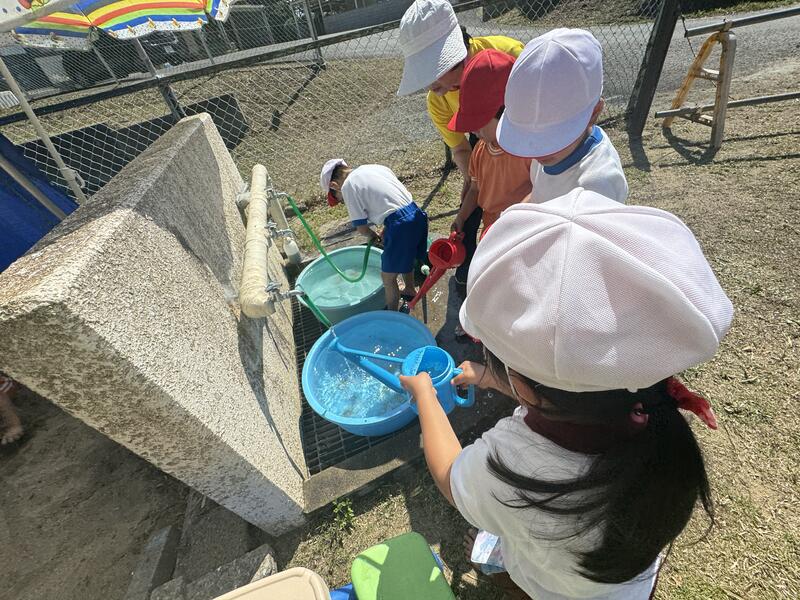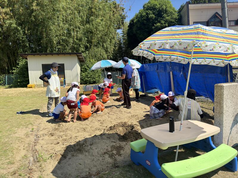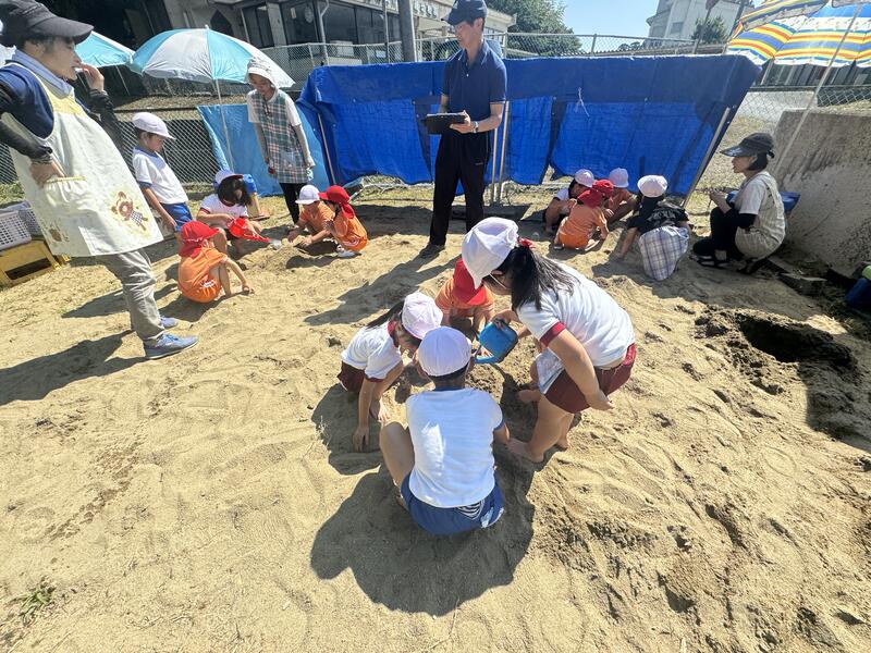 砂場では、1年生が園児をリードして楽しく遊ぶ場面が見られ、園児も大喜びでした。