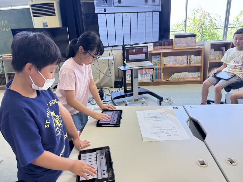 子どもたちの順応性は素晴らしく、県内でも初めての取組ではありますが、すぐにガレージバンドや電子機器の操作に慣れ、楽しくアンサンブル演奏を披露することができました。
