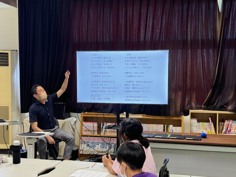 最初はなかなか声が出なかった子どもたちも、2名の先生方の的確な指導により、綺麗な歌声が響くようになりました。