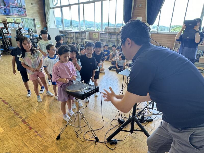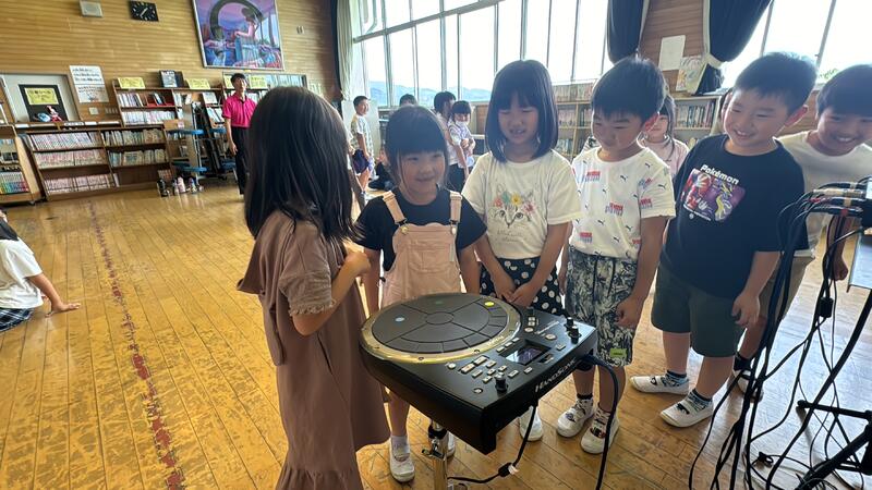 子どもたちは、マサキング先生の軽快なドラマパターンに合わせて、最新の電子楽器であるドラムパッドやサンプラーを演奏したり、リズムに合わせて身体を動かしたりして、最先端のリズムに合わせて体を動かす楽しさやリズムをつくる面白さを体験することができました。