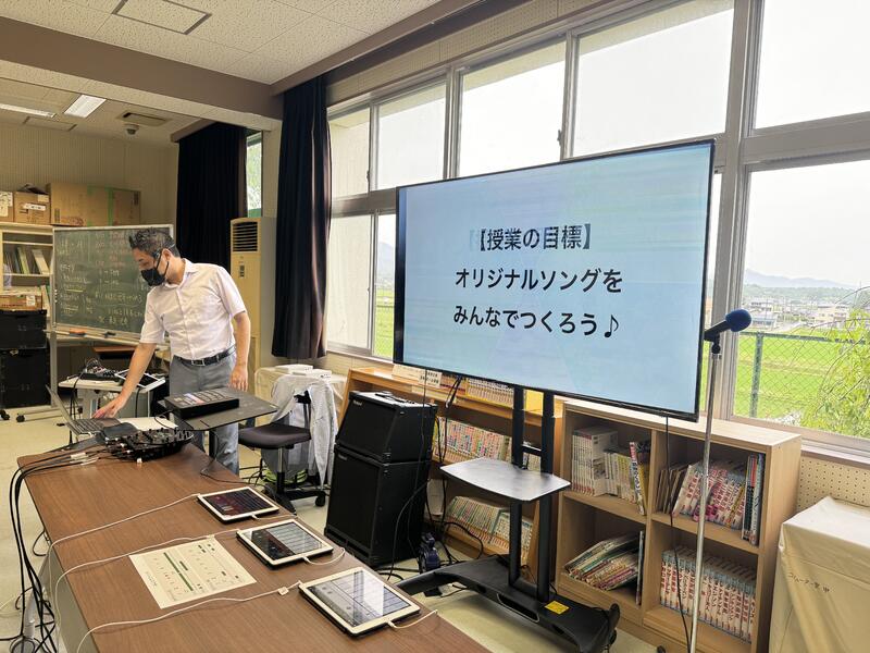 そうした中で、本校ではiPadにインストールされているガレージバンドというアプリがあまり活用されていないという県全体での課題を解決すべく、今回のように外部からプロフェッショナルをお呼びしてついて研究を進めております。
