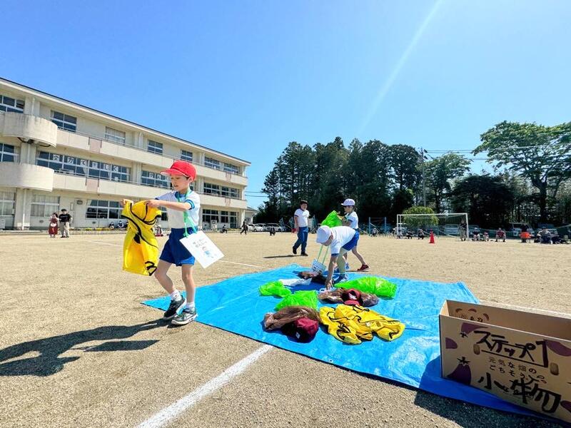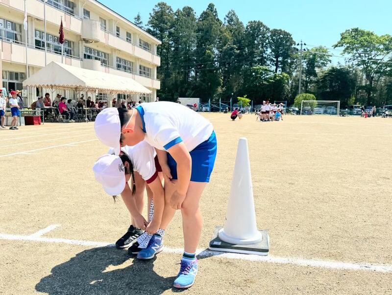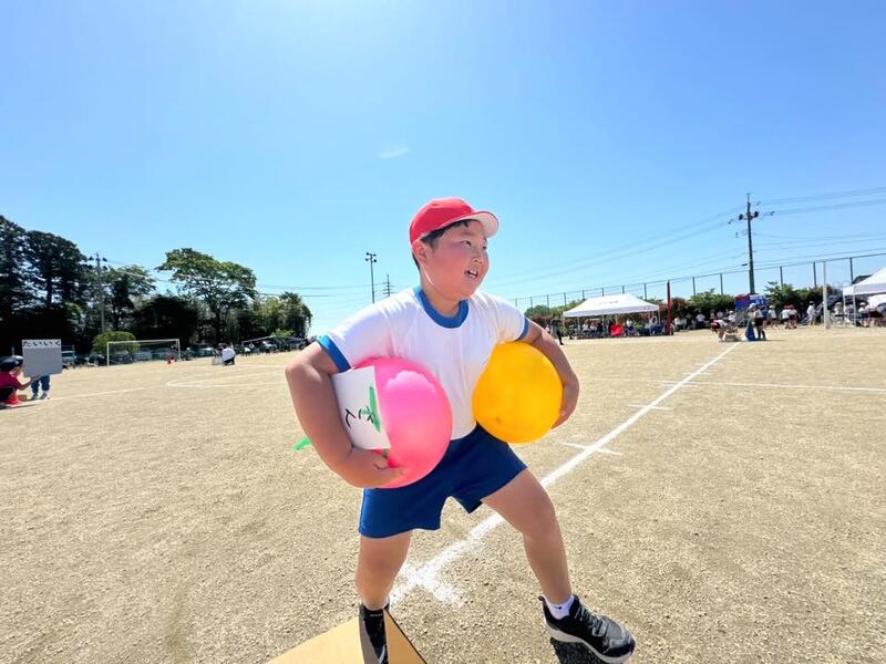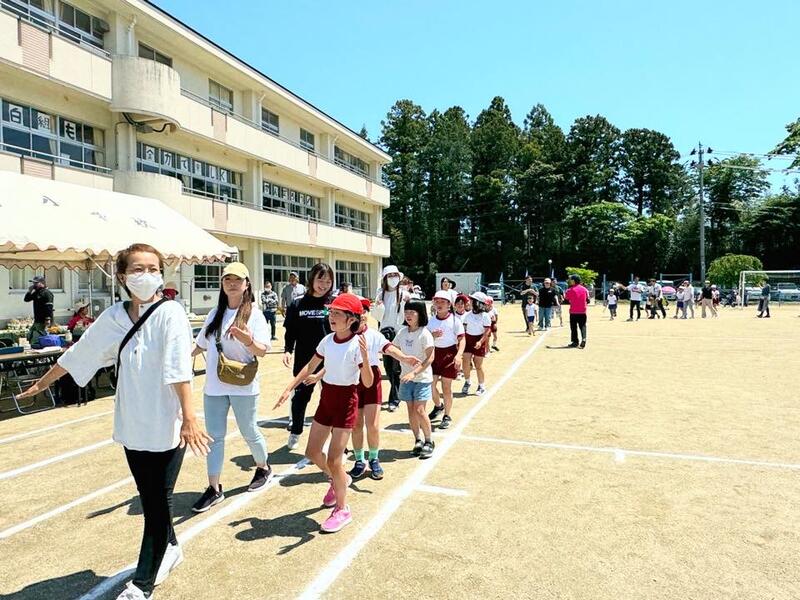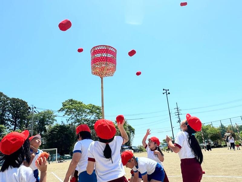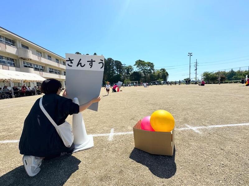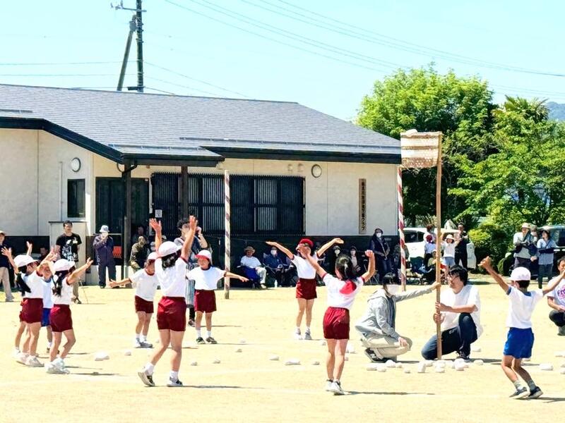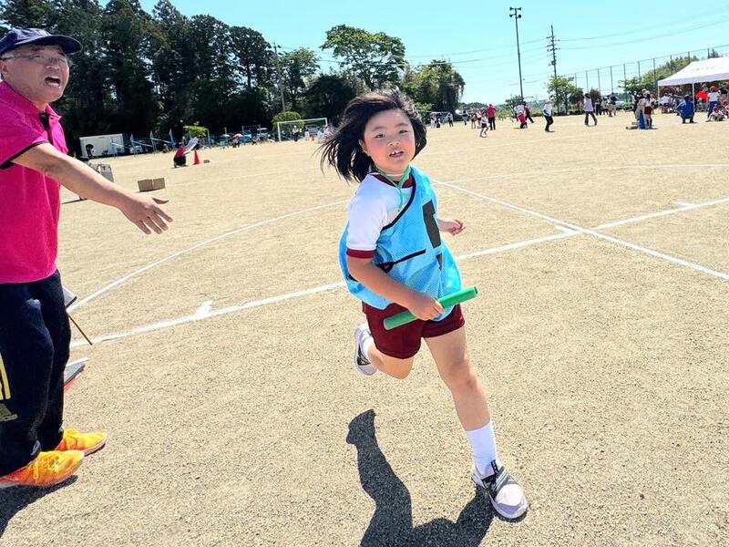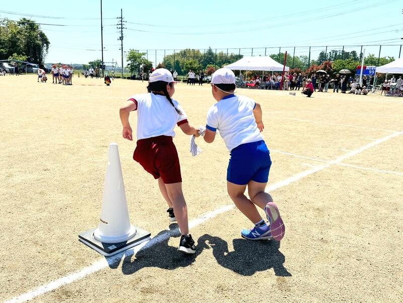 本校では1・2年生が、「チェッチェッコリ」の歌に合わせてオシリふりふり手足伸び伸びのダンスをしたり玉入れをしたりして競技を楽しむ姿が、観客もほっこりと楽しませてくれました。