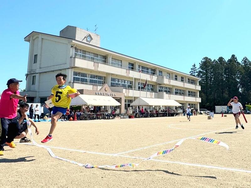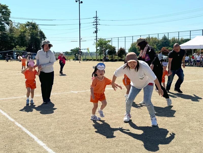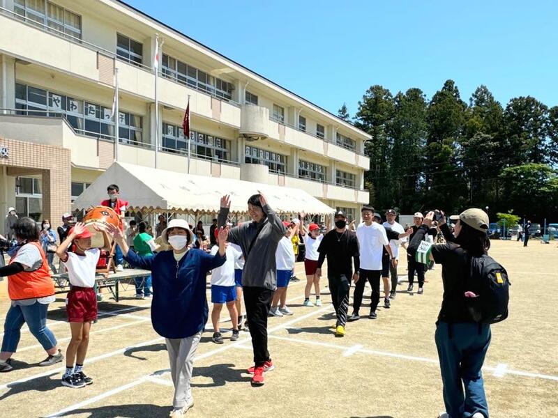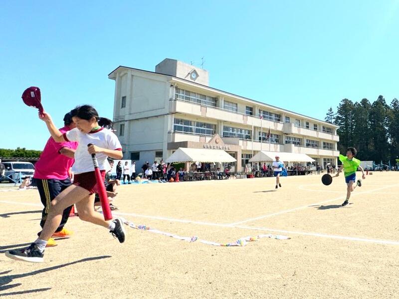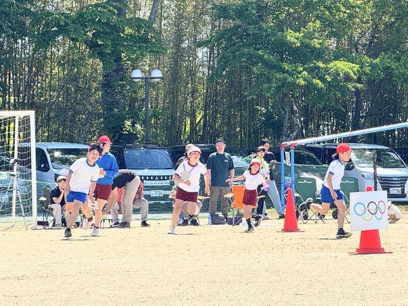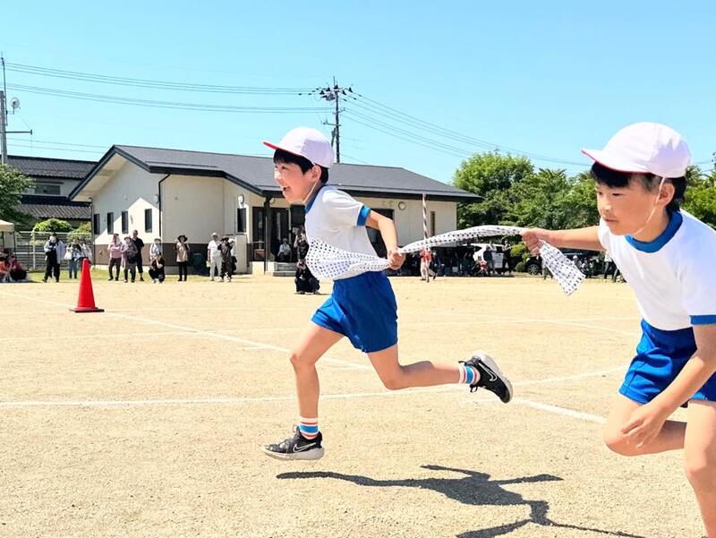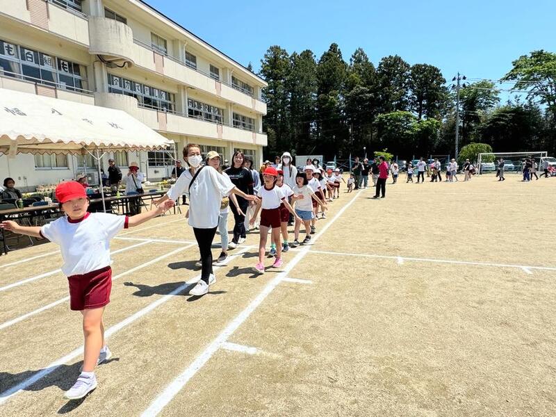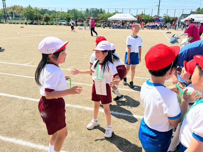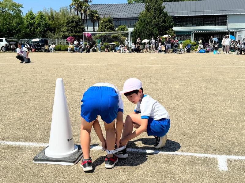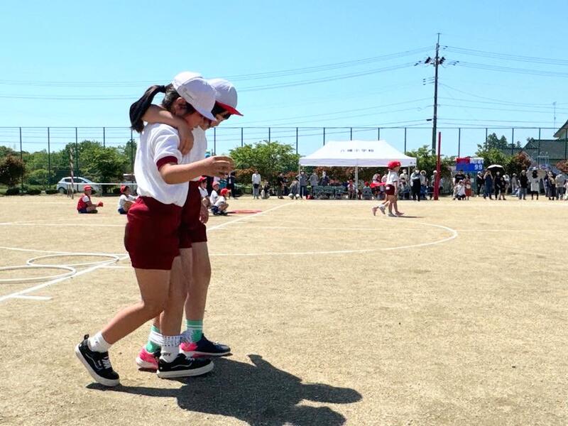 本校では1・2年生が、「チェッチェッコリ」の歌に合わせてオシリふりふり手足伸び伸びのダンスをしたり玉入れをしたりして競技を楽しむ姿が、観客もほっこりと楽しませてくれました。