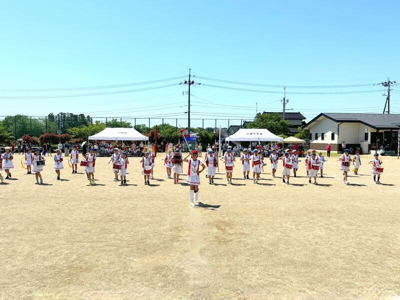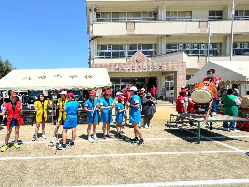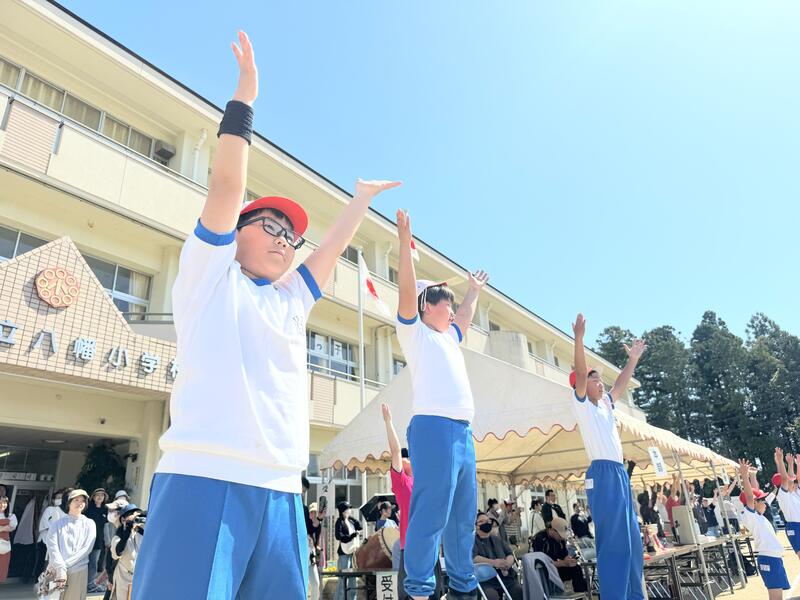 6年生の生演奏に合わせて、全校児童、保護者・来賓の皆様、子どもたちに指導していただいた「八幡公民館:はつらつ健康体操教室」の方々と一緒に、相馬盆踊りを楽しみました。