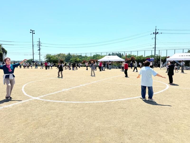 コロナ禍明け初めての取組となりましたが、校庭トラックに合計300名近くの方々が集まり、久しぶりの盆踊りを楽しむことができました。