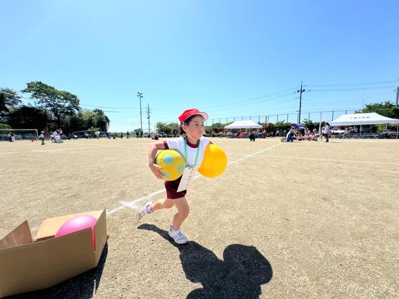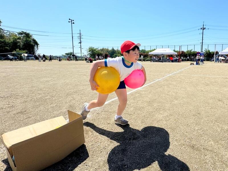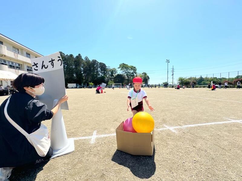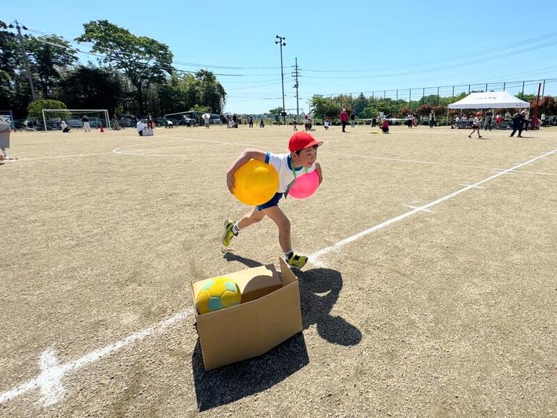 体育のカードならバトンをもって走る、算数カードならいくつボールが必要なのか計算してゴールに運ぶなどしながら、自分が拾ったカードに合わせて課題をクリアしながら一生懸命ゴールを目指す姿がとても立派でした。