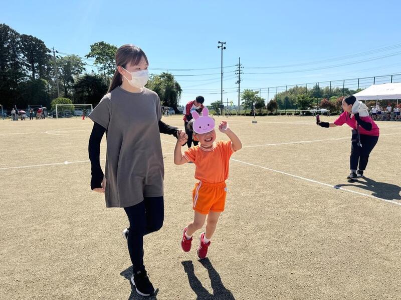 子どもたちは、ユーチューバーやサッカー選手、パティシエなど人気のある職業が描いてあるカードを拾い、その職業に変身しながら、諦めないで最後まで全力でゴールを目指す姿がとても立派でした。
