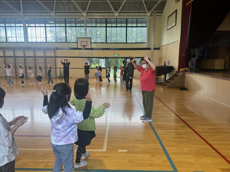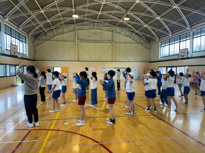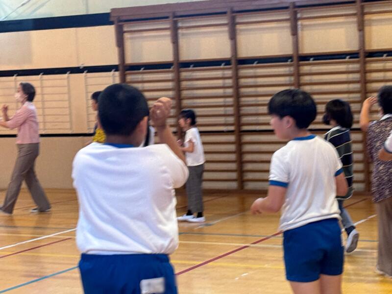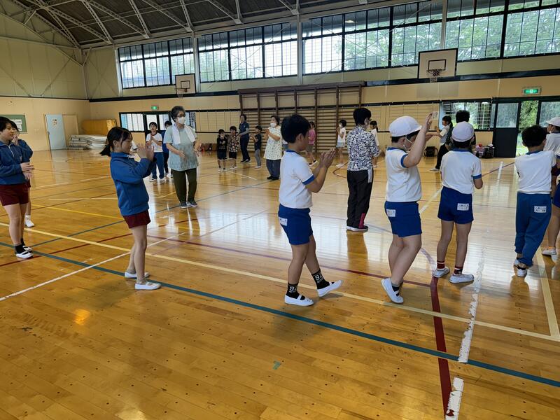 コロナ禍の影響もあり、最初はなかなかうまく踊ることができなかったのですが、達人の丁寧な指導としなやかな動きのお陰でみるみると上達し、最後は、6年生の演奏に合わせて踊ることができました。