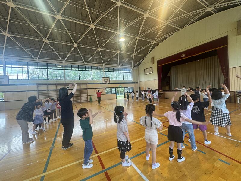 今回の練習には、踊りの達人2名も駆けつけてくださり、「伸び伸びと大きく、楽しく踊る」を合言葉に、全校生で盆踊りを楽しみました。