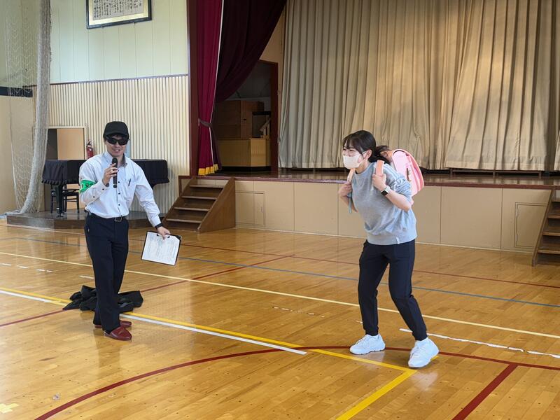 生活安全課の方が不審者役となり、3年生や6年生、教職員の代表が、声かけ事案のシュミレーションを体験しました。