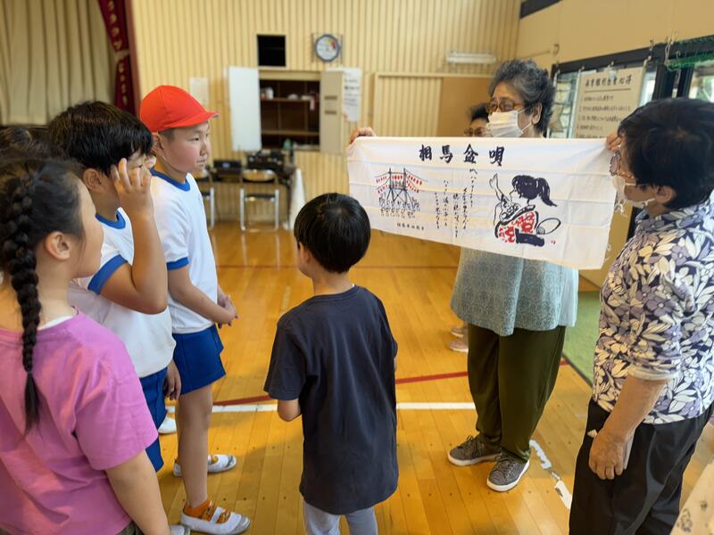 本日、5名の達人に来校していただき、5・6年を対象に相馬盆踊りを伝授していただきました。