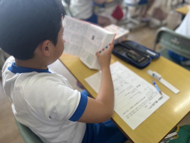 子どもたちは、辞書を引きながら言葉の意味や例文を視写したり、実際に例文を作ったりしながら、語彙の増やし方を学ぶことができました。